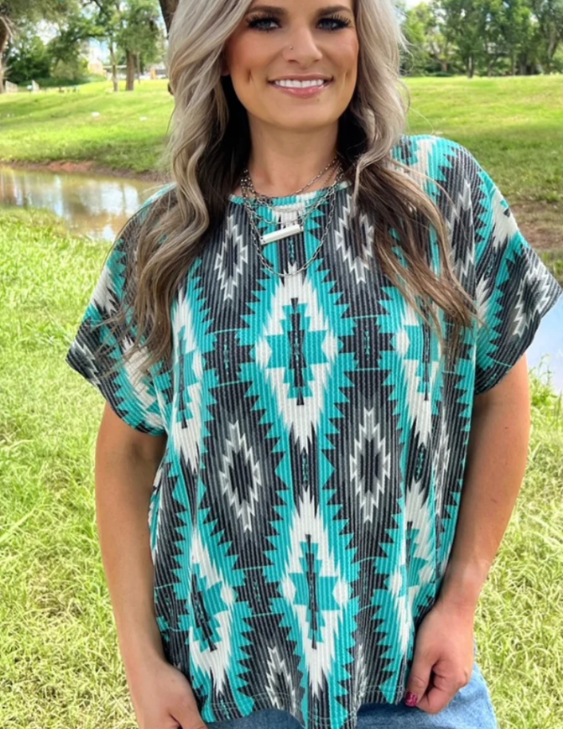 Aztec Embroidery Front Tie Top